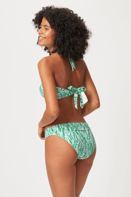 Our most supportive U-Bar Halterneck Top, the U-Bar is specifically designed for a fuller cup size. This high-support bikini top has been crafted in a leaf-inspired print, featuring wide straps at the back and neck to provide comfort and adjustability. The underwiring and side boning offer enhanced support while the U-bar hardware adds a flattering detail.