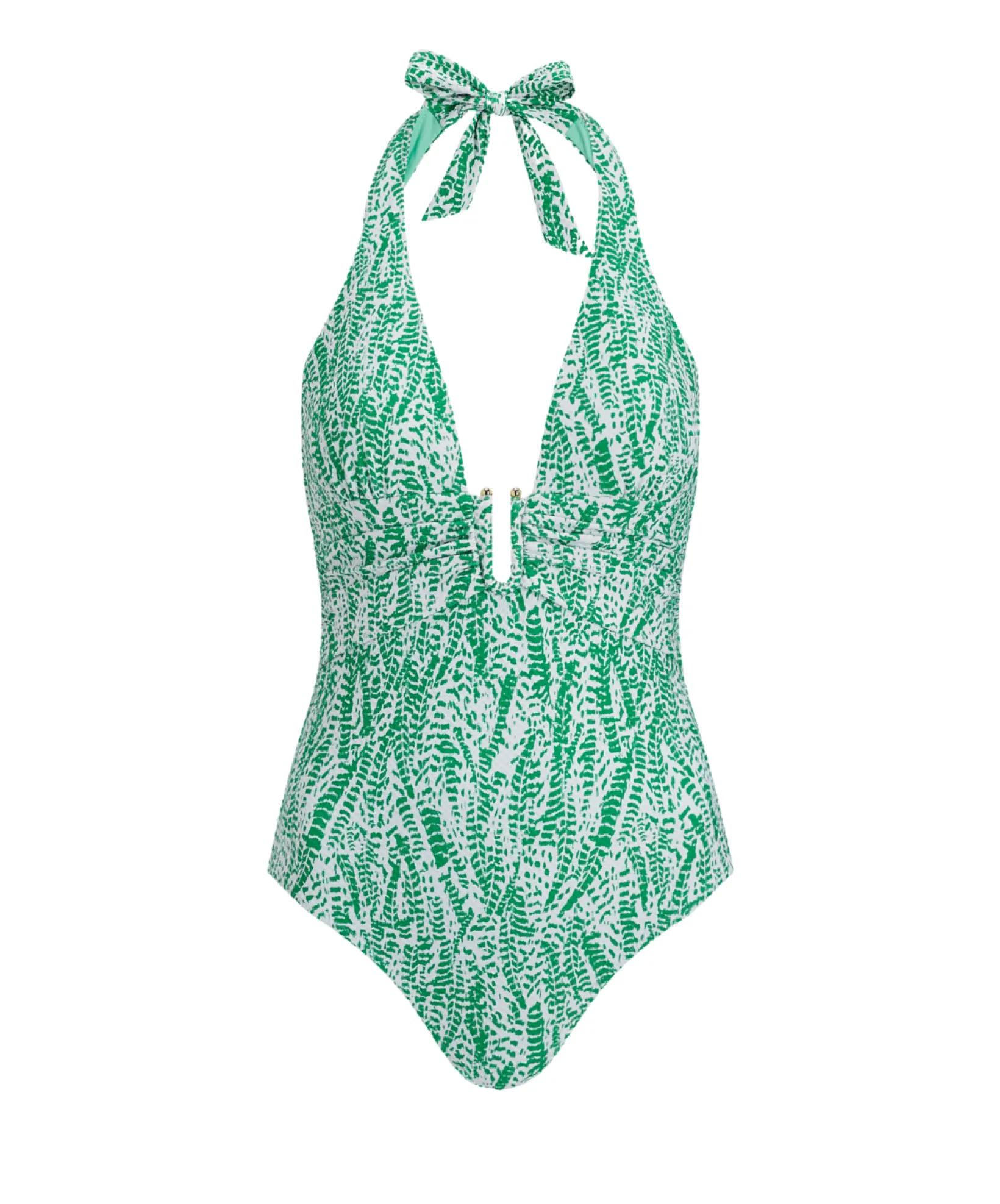 The U-Bar Halterneck Swimsuit provides the perfect combination of support and sculpting, thanks to its decorative under-bust panel and U-bar hardware. It features a leaf-inspired print design, with an adjustable halterneck and removable padding for a perfect fit.