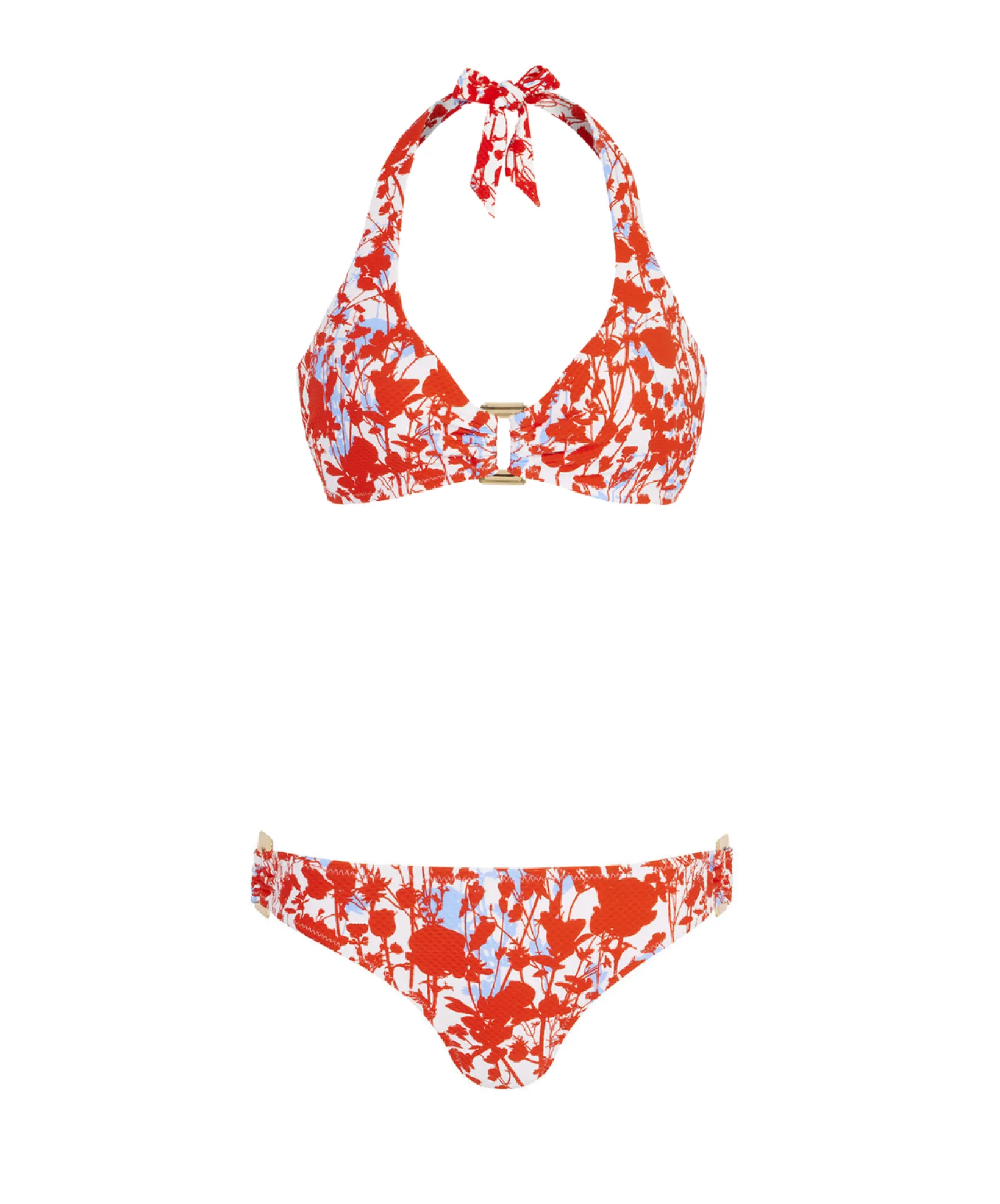 The Deia Rectangle Bikini features a lovely red and blue floral print, adorned with chic gold hardware. This style offers medium support, ensuring a seamless and flattering fit that’s ideal for lounging on the beach or enjoying cocktails by the pool.