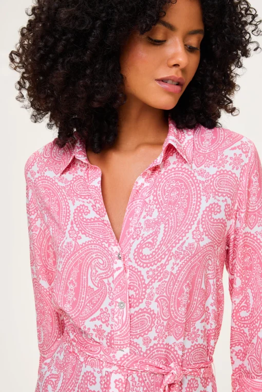 Our beautiful paisley print, Ischia Maxi Shirt Dress fits neatly around the shoulders and body and falls flatteringly above the ankle. Finished with our bespoke, gold buttons through the centre front, three-quarter length sleeves and a removable belt, it is the perfect dress for summer in the city or by the coast.