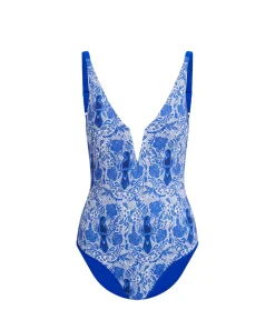 Introducing the Reversible V-Cut Swimsuit in a gorgeous tropical-inspired print, featuring a flattering deep neckline and adjustable back straps for the perfect fit. With a delicate striking print on the outer and a plain, vibrant blue fabric on the reverse, choose your style based on your mood.