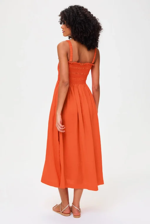The San Sebastian shirred midi dress, crafted from luxurious linen, is the perfect beach to bar summer dress. Featuring removable straps, a gathered bust detail and a semi-flared skirt with flattering side slits.