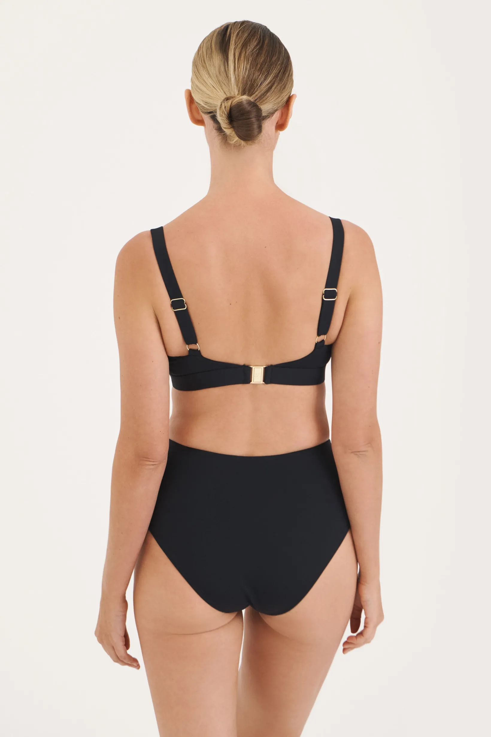 The Scoop Top in Black with removable bust padding and adjustable straps ensure a personalised fit, finished with Heidi Klein’s signature branded hardware.