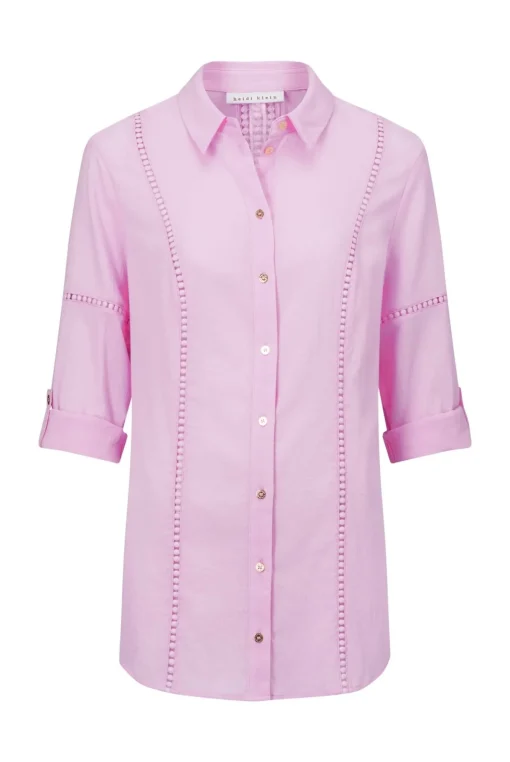 In a pretty powder pink, the Sicily Lace Beach Shirt is crafted from a light and breathable 100% organic cotton cheesecloth.