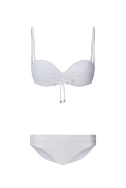 Our bandeau bikini has been created to enhance and lift through invisible underwiring and secret side boning. Styled with decorative ruching which flatters the neckline as well as adjustable ties with signature Heidi Klein gold hardware. Paired with our hipster bikini bottoms feature an elegant and streamlined design, offering medium coverage.